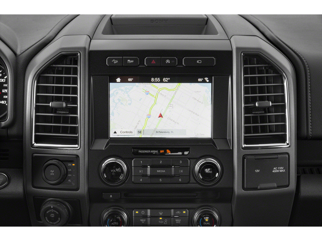 - Full Floor Console w/Locking Storage, Mini Overhead Console w/Storage, 3 12V DC Power Outlets and 2 Interior 120V AC Power Outlets