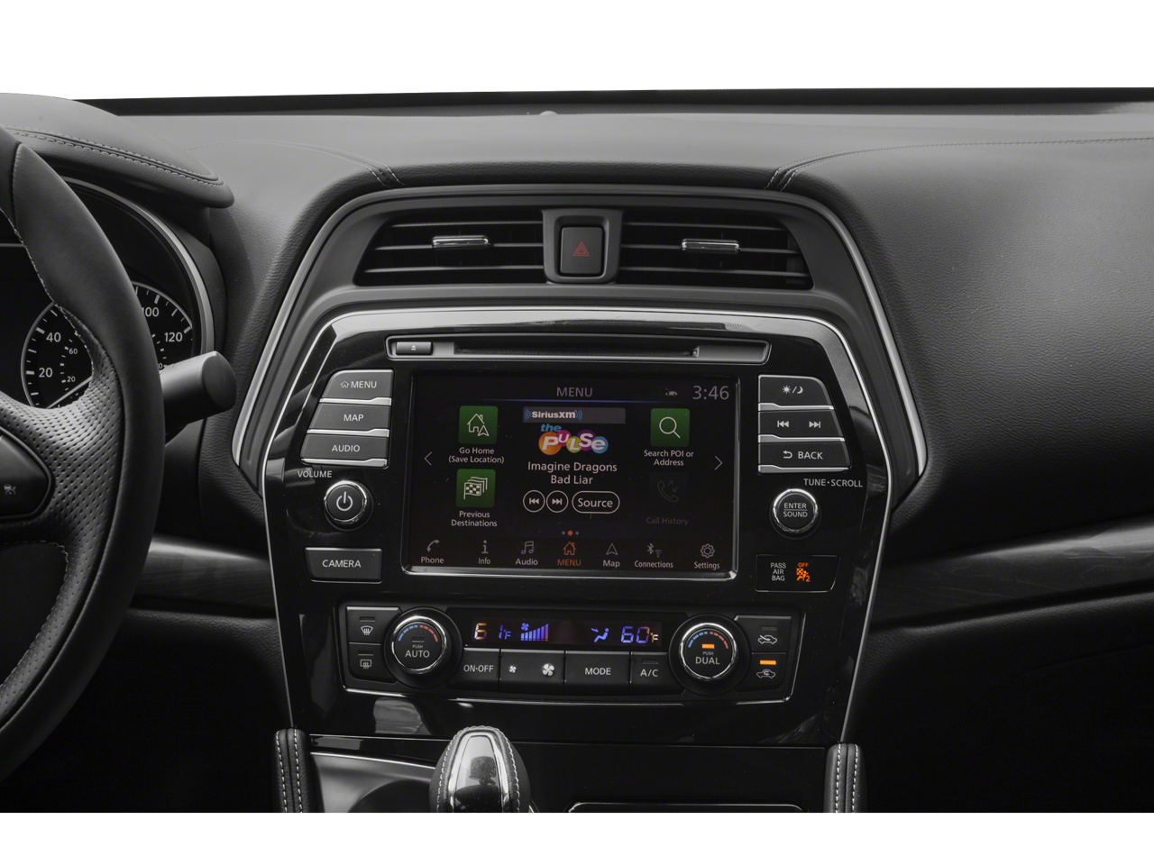 - Radio: AM/FM/CD Audio System w/Navigation -inc: NissanConnect services powered by SiriusXM - automatic collision notification, emergency call and stolen vehicle locator, remote services including start/stop, lock/unlock, flash lights, sound horn, customizable alerts including drive zone, valet, curfew and speed alerts, dealer service scheduling and maintenance alerts, 11 speaker Bose sound system, rear USB ports (charge only, 1 Type-A, 1 Type-C), Nissan door to door navigation w/3D building graphics and satellite imagery, HD radio, SiriusXM Travel Link (weather, fuel prices, movie listings, stock info, sports and parking), SiriusXM Traffic, MP3/WMA reader, NissanConnect featuring Apple CarPlay and Android Auto, 8" color display w/multi-touch control, 2 front illuminated USB connection ports (1 Type-A, 1 Type-C) for iPod interface and other compatible devices, Bluetooth hands-free phone system, streaming audio via Bluetooth, hands-free text messaging assistant, swipe to meter functionality, SiriusXM satellite radio w/advanced audio features and auxiliary audio input jack