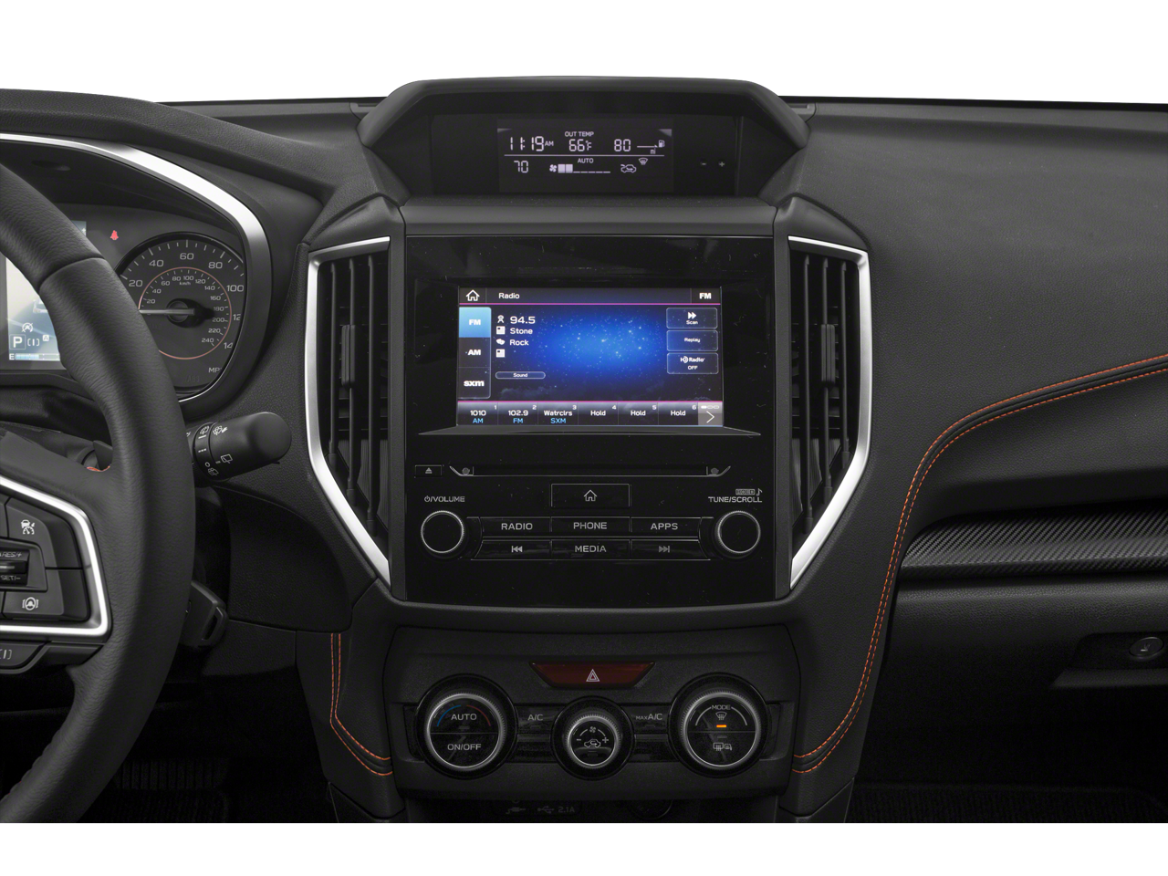 - Radio: Subaru STARLINK 6.5" Multimedia Plus System -inc: AM/FM stereo, HD Radio, single disc CD player w/MP3/WMA/CRR/RW file capability, multi-touch gesture high resolution display screen, voice activated controls, Bluetooth® audio streaming and hands-free phone connectivity, Bluetooth® hands-free SMS text messaging connectivity, iPod control capability, SiriusXM All Access Radio (4 months free trial/subscription required after), SiriusXM Travel Link (4 months free trial/subscription required after), smartphone integration: AHA, Android Auto, CarPlay, Pandora and STARLINK cloud applications, USB audio system update, steering wheel audio and Bluetooth® control switches, 6 speakers (2 dash panel tweeter, 2 front door and 2 rear door), 3.5mm auxiliary input jack and front dual USB A input/charge ports