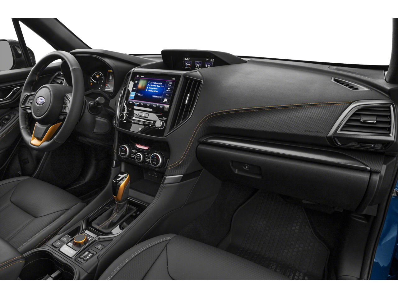 - Textured StarTex Upholstery -inc: silver and copper stitching and embossed Subaru Wilderness logo on head restraints