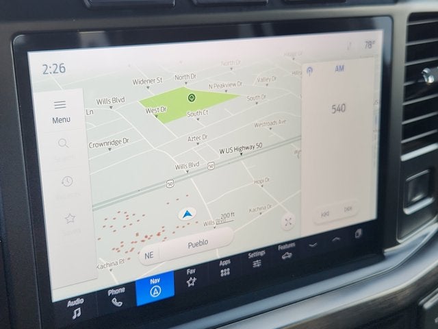 - SYNC 4 w/Enhanced Voice Recognition -inc: 12" LCD capacitive touchscreen w/swipe capability, information on demand panel, wireless phone connection, cloud connected, AppLink w/app catalog, 911 Assist, Apple CarPlay and Android Auto compatibility, digital owner's manual, conversational voice command recognition and connected navigation w/complimentary 1-year trial for eligible vehicles that begins on the new vehicle warranty start date, Customers must unlock the navigation service trial by activating the eligible vehicle w/a FordPass member account, If not subscribed by the end of the complimentary period, the connected navigation service will terminate, and the system will revert to embedded offline navigation, Navigation services require SYNC4 and Ford Pass Connect (optional on select vehicles), complimentary connect service and the FordPass app (see FordPass terms for details), Connected service and features depend on compatible AT&T network availability, Evolving technology/cellular networks/vehicle capability may limit functionality and prevent operation of connected features, FordPass app, compatible w/select smartphone platforms, is available via a download, Message and data rates may apply