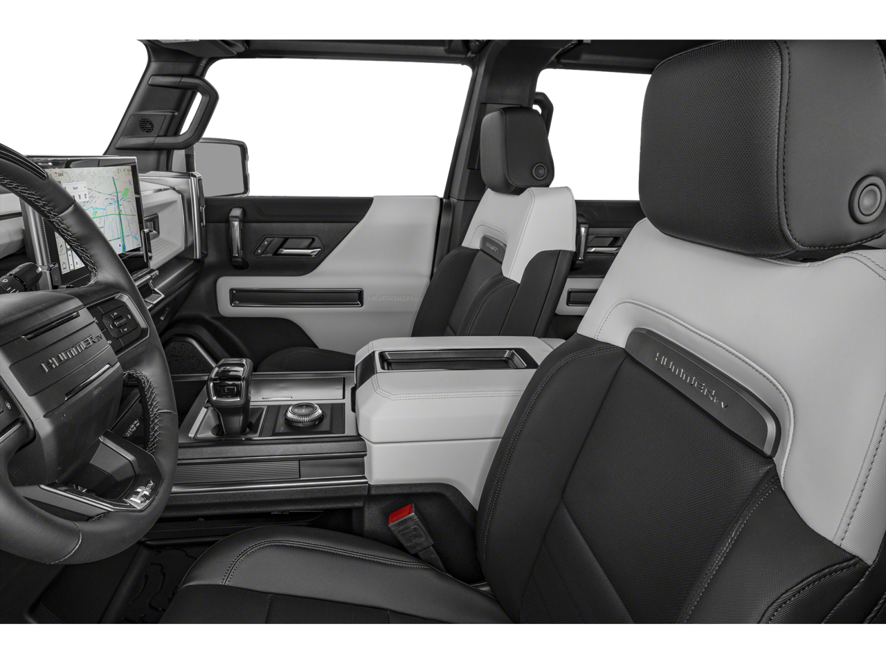 The exterior of this Hummer EV SUV is a true head-turner, adorned in a stunning White finish that exudes confidence and sophistication. The custom-molded front and rear splash guards, along with the Performance Red emblems, add a touch of sporty flair, while the 22-inch Grazen Metallic wheels provide a commanding presence on the road.